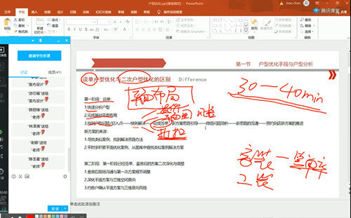 总结:提炼了方法找到了网络授课的模式,已经有学生会主动进入直播间等待老师上课,通过屏幕侧方的鲜花、礼物增加了课堂的互动性,唯一不足的是没有办法直观快速的看到学生练习和作业情况,只能通过班群,随时解答学生的问题。